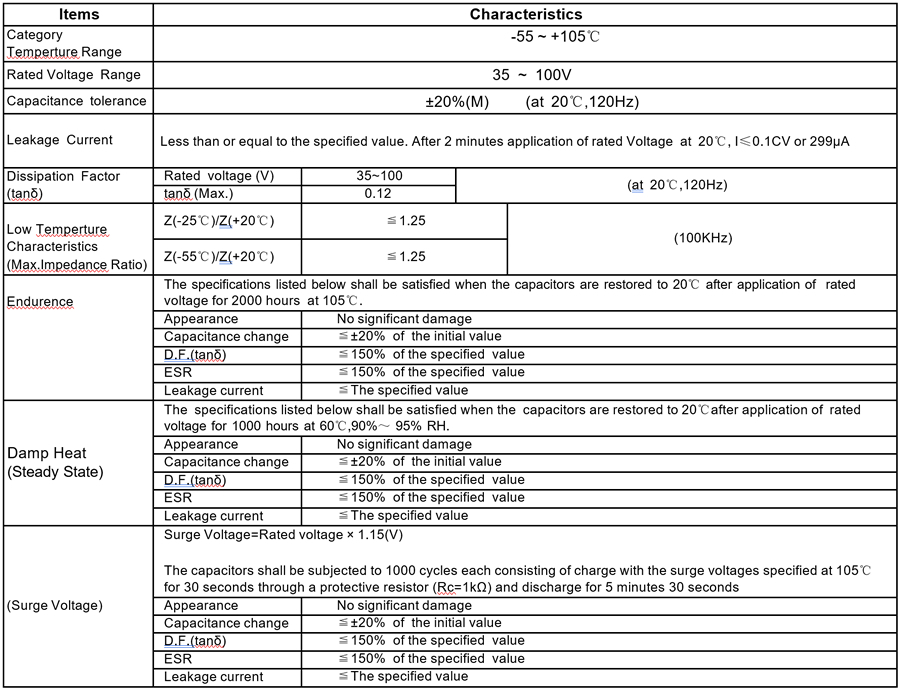 Radial, Voltage Range 35V~100VDC