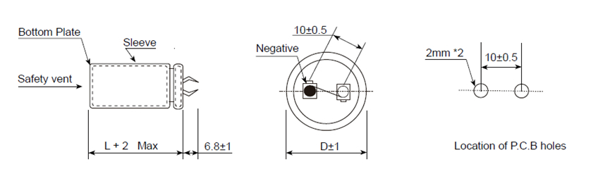 I≤3 CVafter 5minute I:Leakage current C:Nominal capacitance V: Rated voltage |