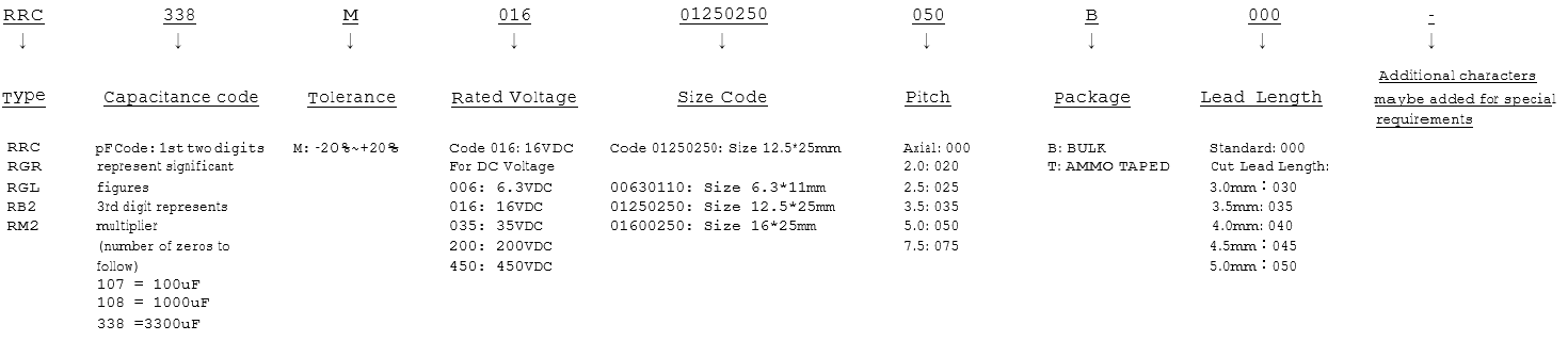 | When capacitance is more than1000μF, tgδ will add 0.02 per 1000μF addition. | |||||||||