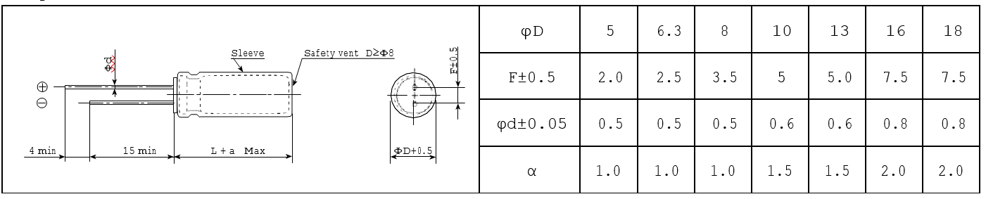 | ΦD | 5~6.3 | 8-10 | ≥12.5 | ||||||